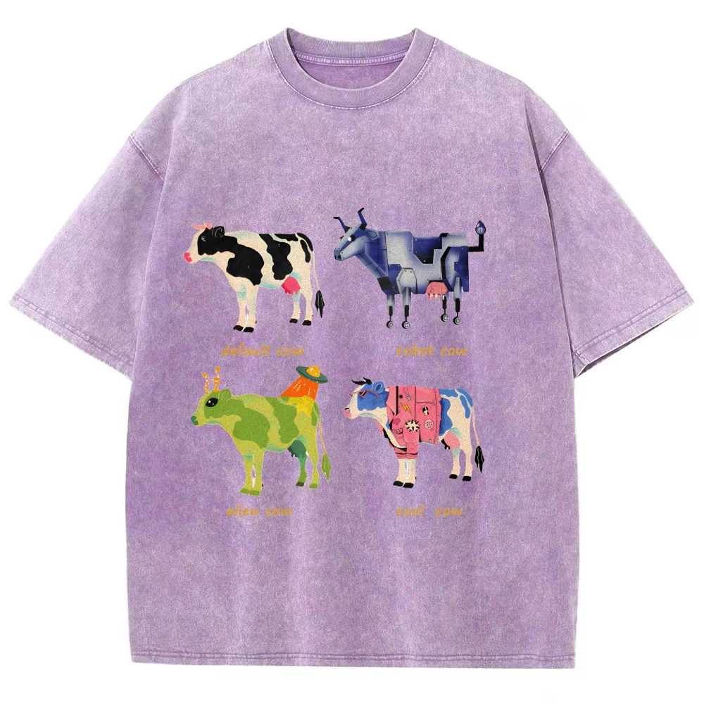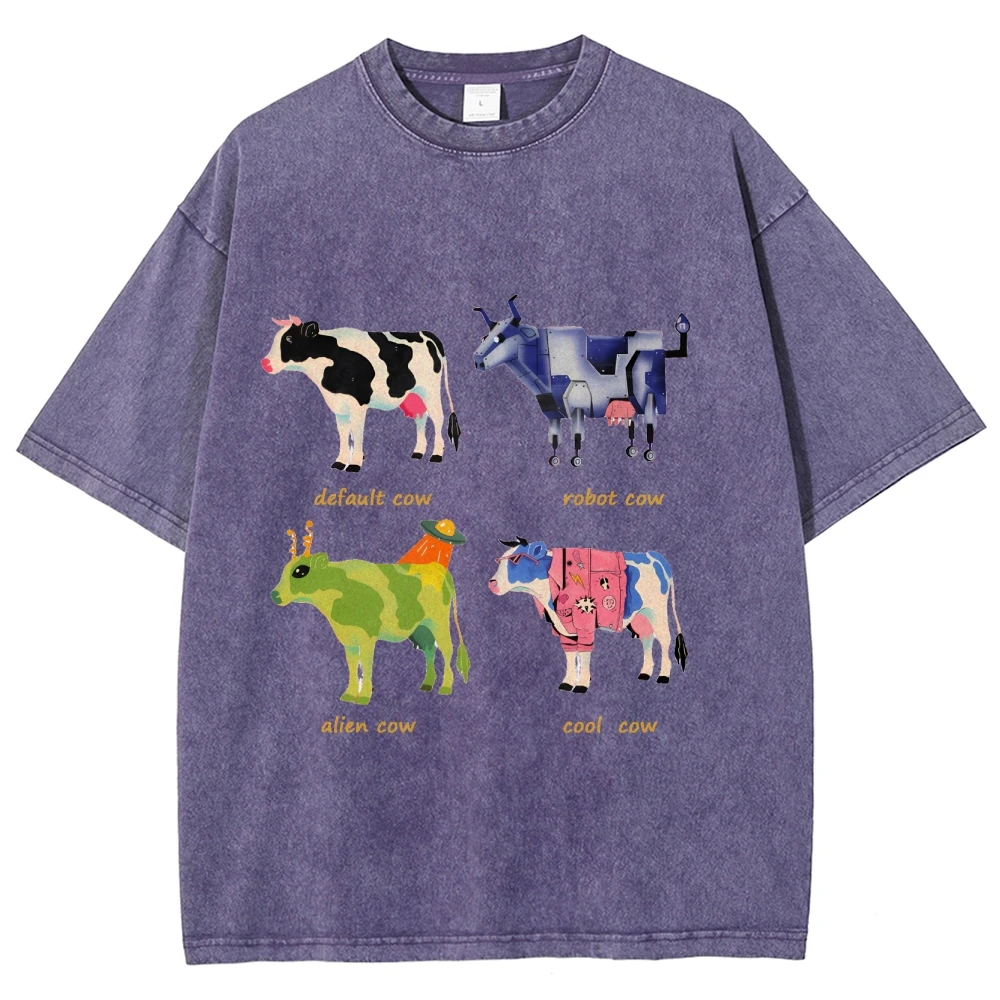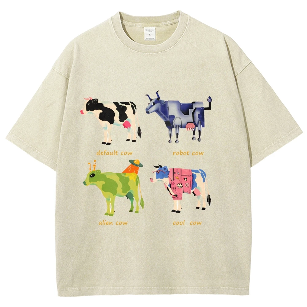 Mens Retro Cotton Funny Cow Streetwear Printed Top